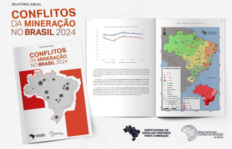 O Relatório apresenta os principais resultados do monitoramento dos conflitos envolvendo a mineração no Brasil em 2024. Os dados completos estão disponíveis em conflitosdamineracao.org, onde é possível consultar cada localidade registrada no Mapa dos Conflitos da Mineração (ainda em fase de atualização online). O levantamento identificou 875 ocorrências de conflito ...